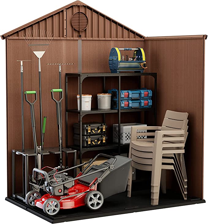 【Storage Shed】【BS】8x6 ft Outdoor Storage Shed, Beige & Brown